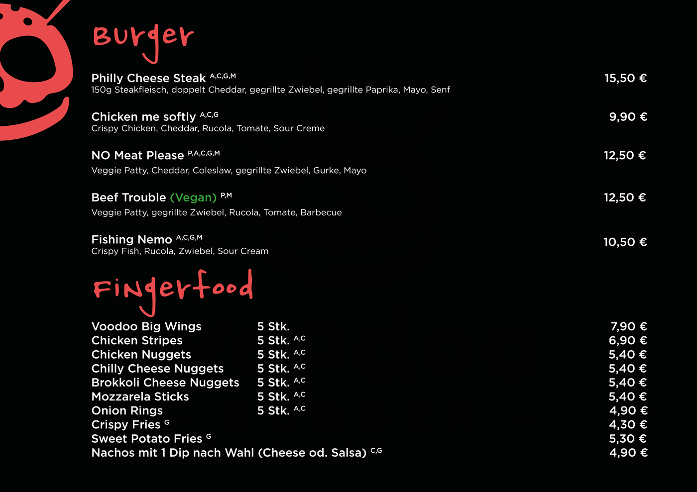 100% House Ground Beef, Chilli-Cheddar, Rucola, Bacon, Onion Rings, Jalapenos, Hot-Mayo